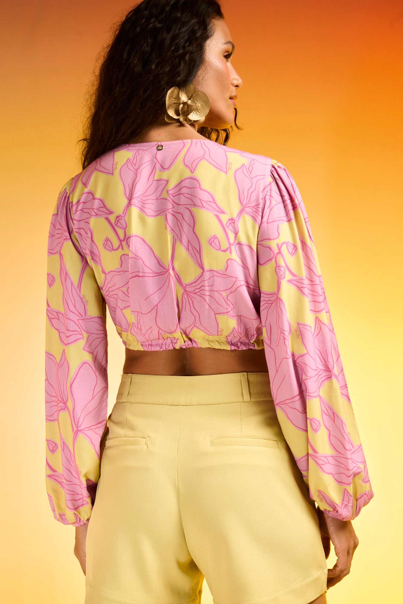 BLUSA CROPPED MANGA LONGA ESTAMPADA