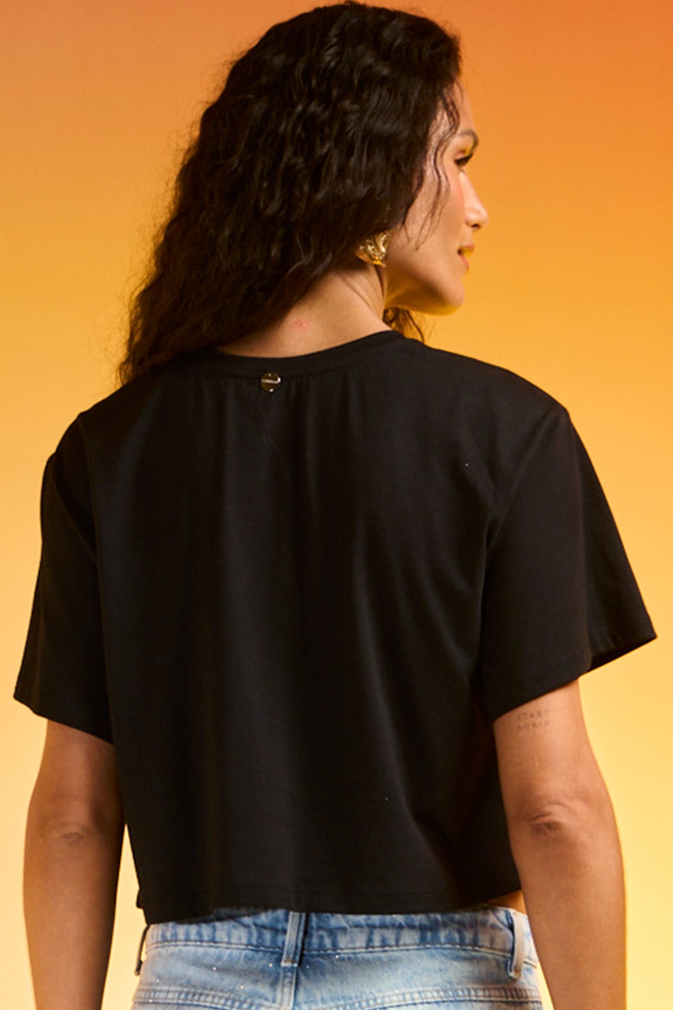 T-SHIRT CROPPED COM ANIMAL PRINT APLICAÇÃO