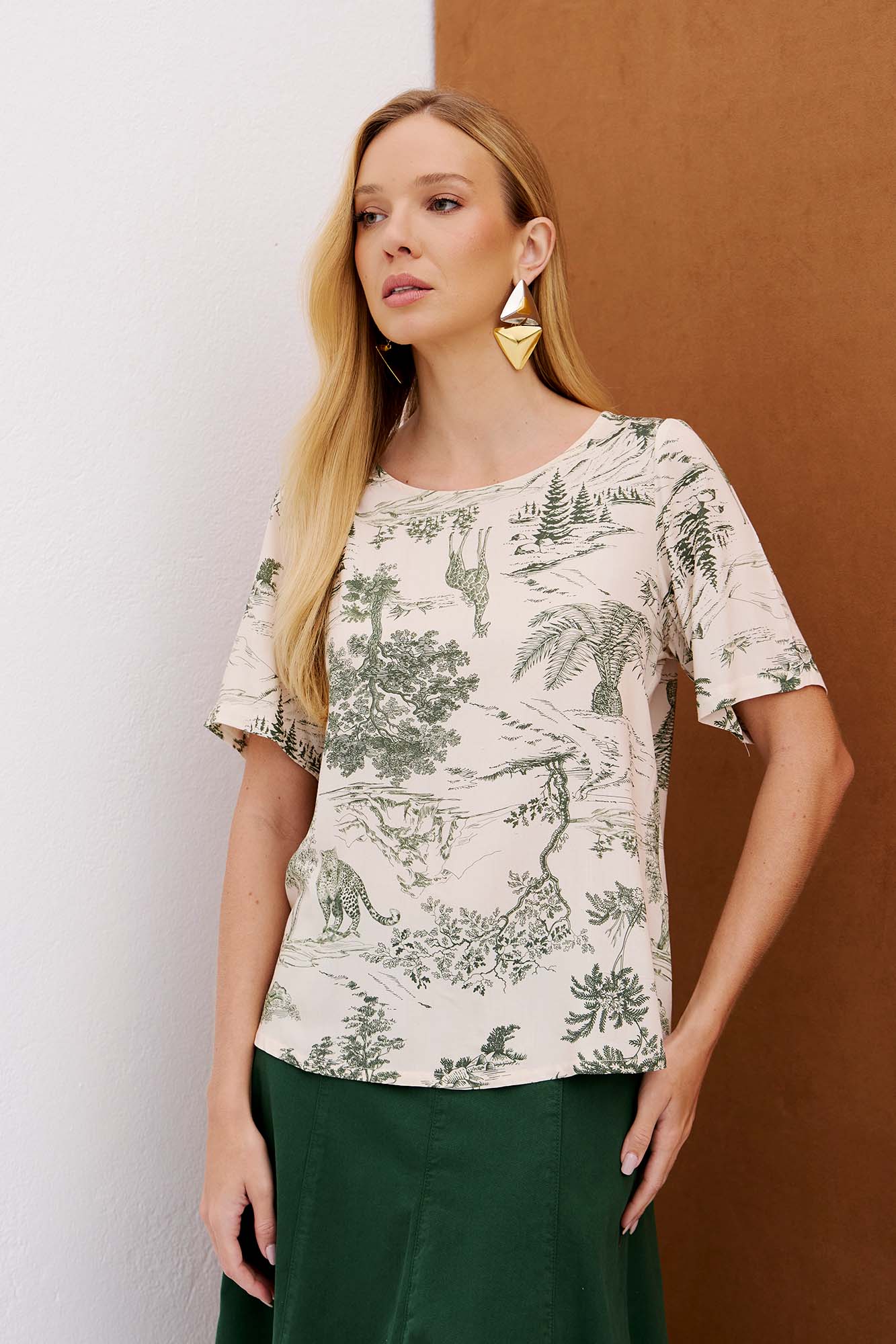 BLUSA EM VISCOSE ESTAMPADA