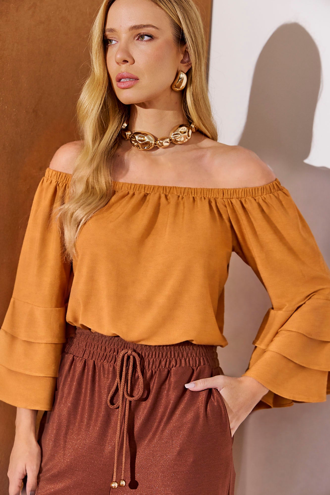 *BLUSA OMBRO A OMBRO COM BABADOS