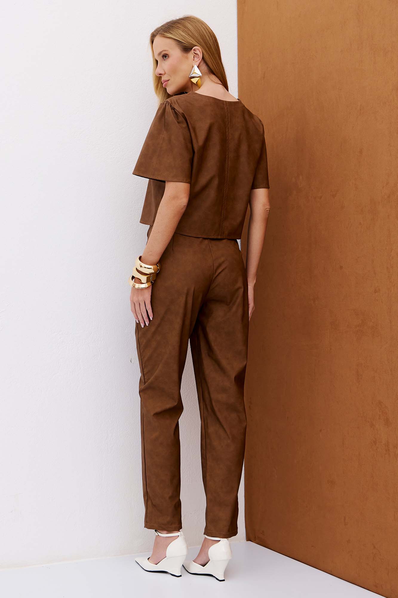 Calça skinny confeccionada em couro ecológico, com modelagem justa que valoriza as curvas, pences posteriores para melhor ajuste no corpo e abertura lateral com zíper invisível. 100% VISCOSE REVESTIMENTO 100% POLIURETANO