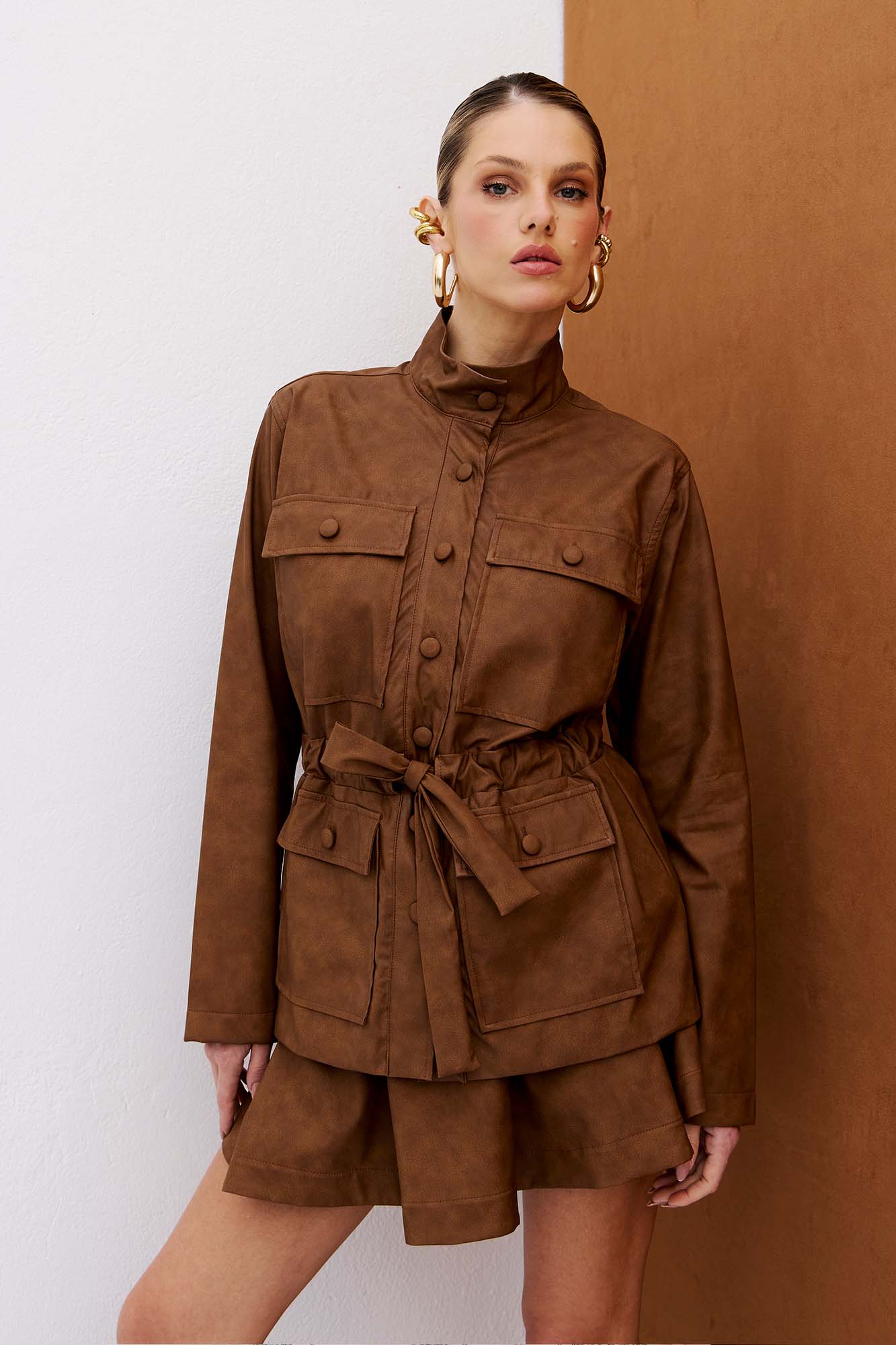 Saia godê em couro ecológico. Com pregas pespontadas que garantem volume marcante, a peça traz lapelas fixas como detalhe charmoso e moderno. A abertura é posterior por zíper invisível. Dica: Use com a t-shirt da coleção City Blue no mesmo material, Trench coat e bota de cano curto para um visual fashionista de em dias frios! 100% VISCOSE REVESTIMENTO 100% POLIURETANO