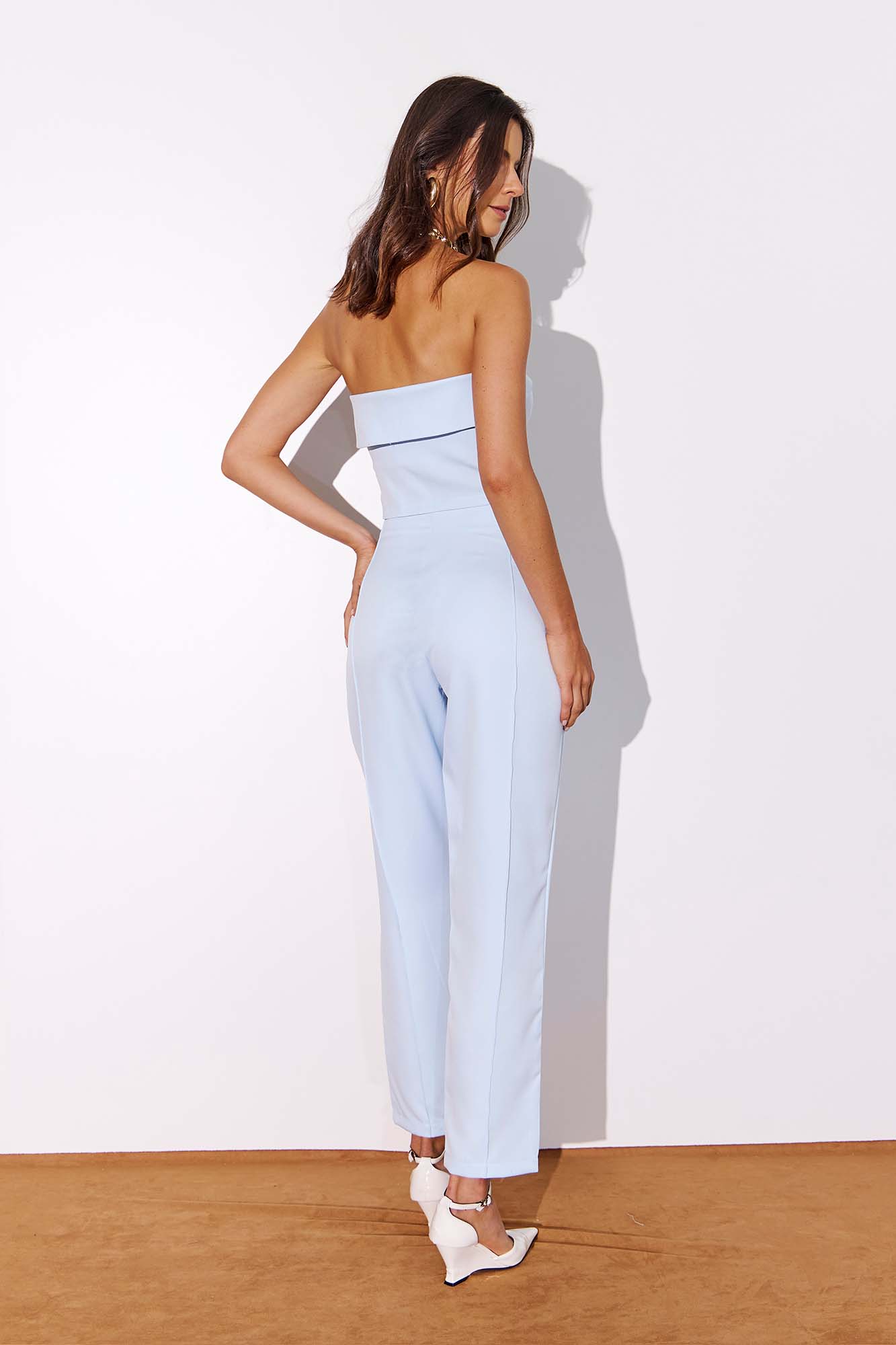 Calça de alfaiataria slim confeccionada em tecido plano, com modelagem ajustada que valoriza a silhueta. Possui bolsos decorativos e fechamento frontal com zíper e colchete internos, garantindo um acabamento elegante. Dica de look: combine com mocassim para um visual sofisticado. 95% POLIESTER 5% ELASTANO.