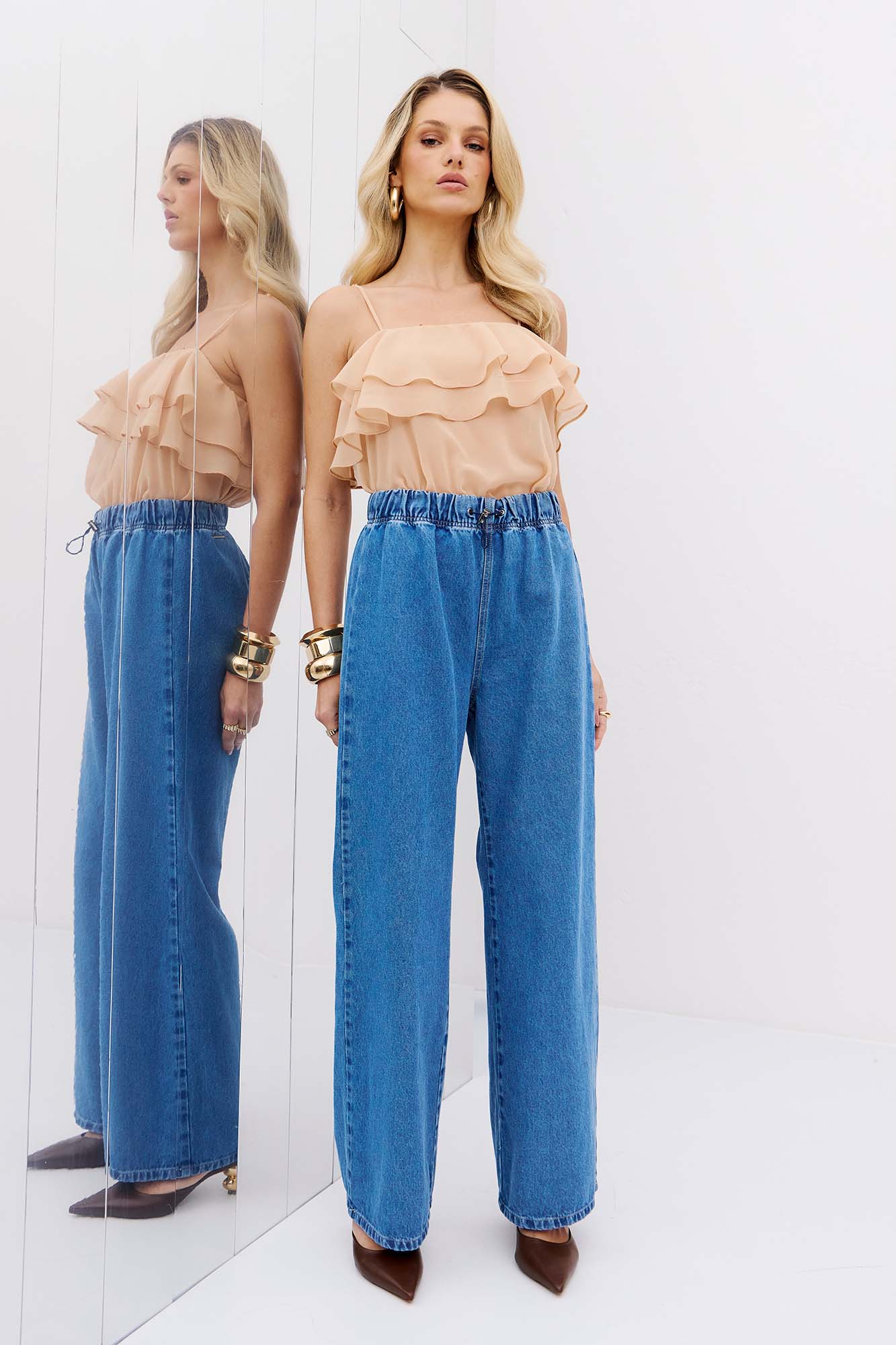 *CALÇA JEANS JOGGER COM REGULADOR
