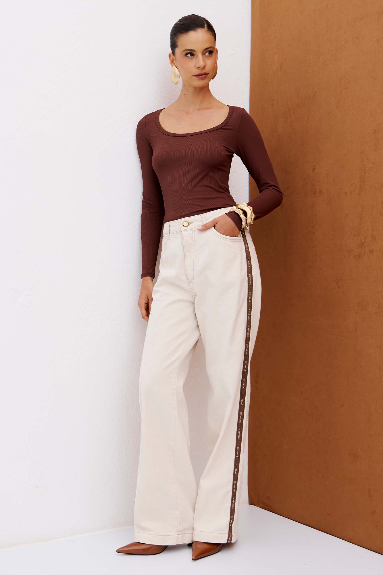 *CALÇA WIDE LEG COM FITA LOGO CÓS ALTO