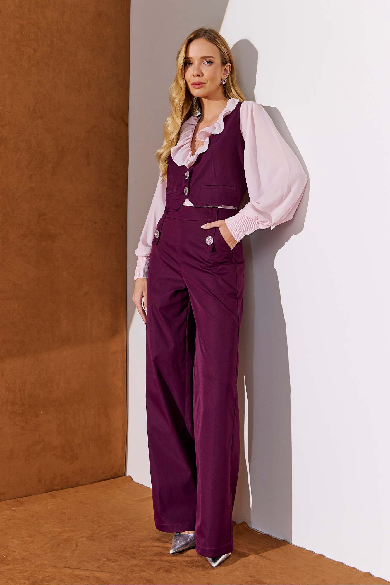 *CALÇA WIDE LEG COM BOTÕES EM PEDRARIA
