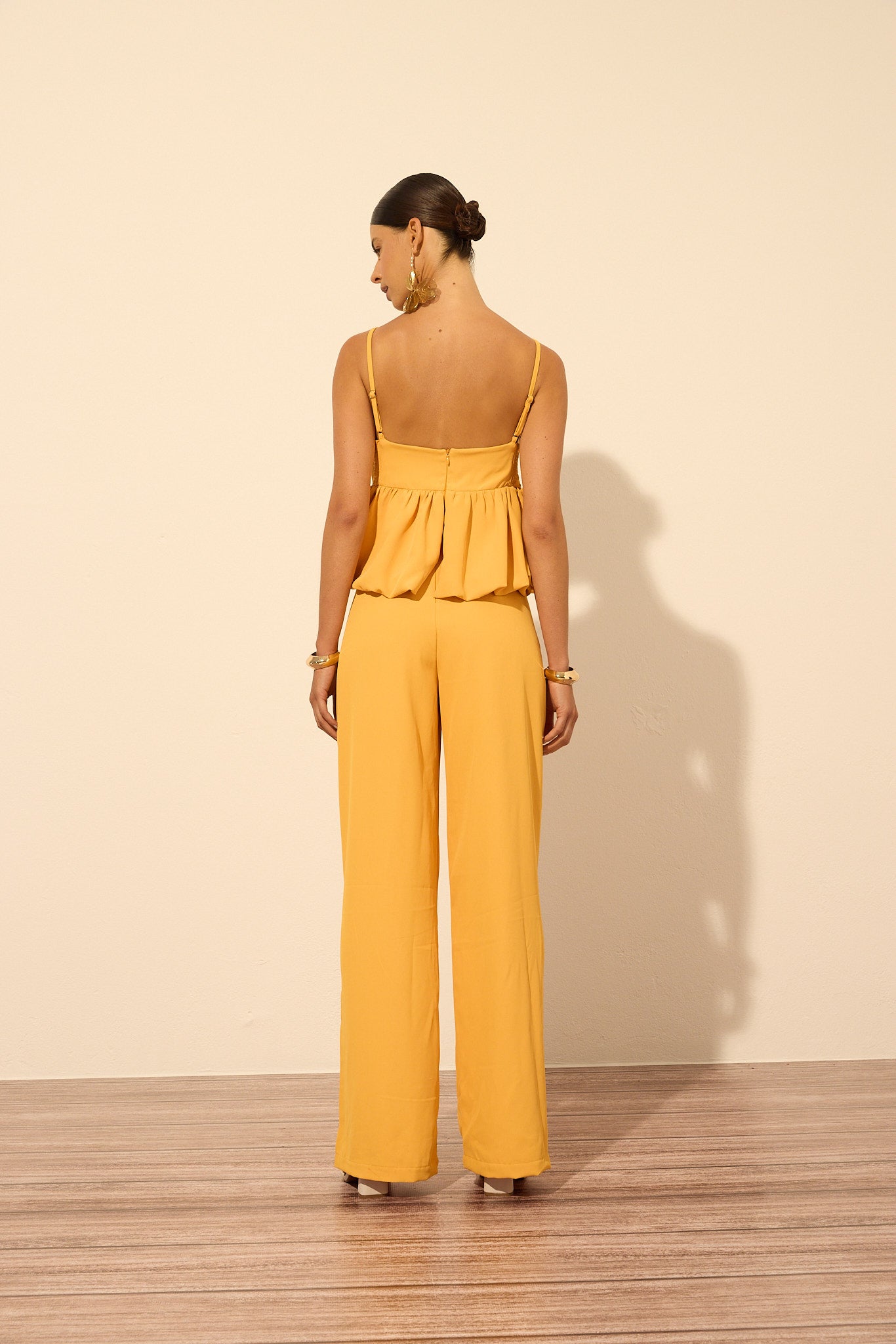 O Macacão City Blue proporciona um look dramático e ousado, perfeito para eventos diferenciados que pedem presença marcante. Confeccionado em tecido plano com forro, ele traz alças ajustáveis, zíper invisível nas costas e recorte em lastex, proporcionando ajuste confortável. As aberturas laterais nas pernas com abotoamento de pressão adicionam um toque de movimento. Com decote de top aparente e recorte balonê na cintura, essa peça garante sofisticação com atitude. Aposte em sandálias de salto para um visual poderoso e impactante.