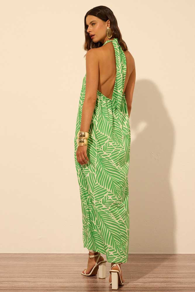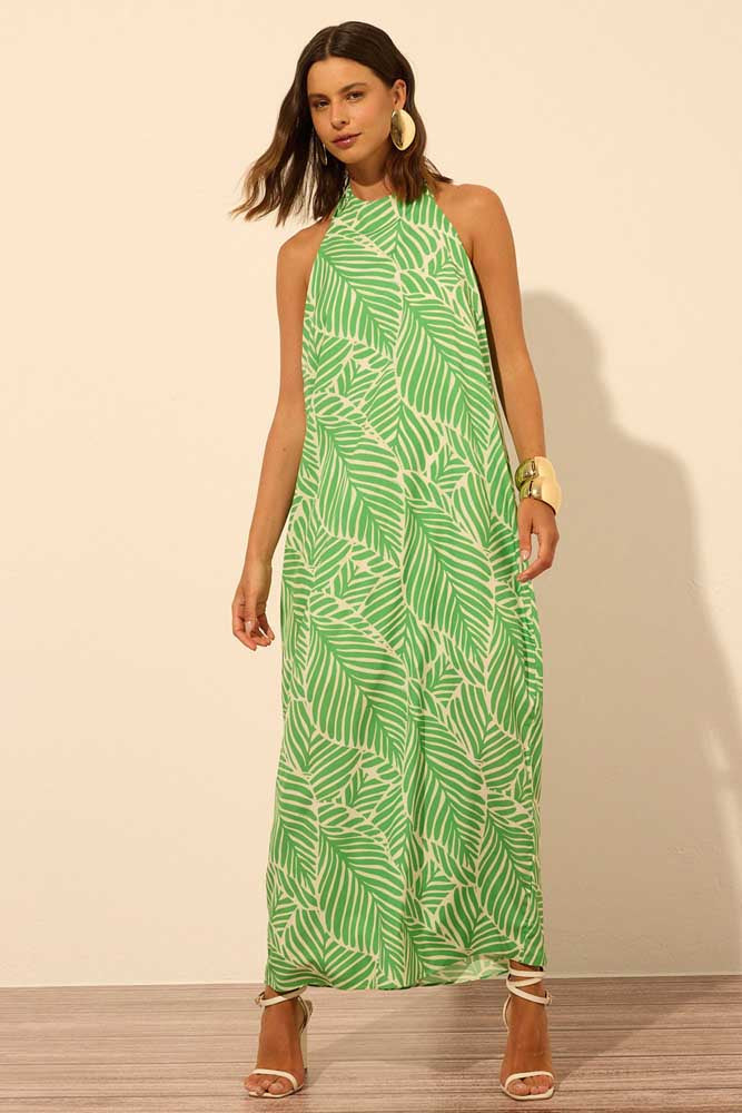 Vestido confeccionado em tecido plano estampado. Este vestido fluido é a escolha ideal para quem deseja conforto e estilo em um só look. Com um design de frente única e uma delicada amarração nas costas, ele se adapta perfeitamente ao seu corpo, enquanto o forro na parte do busto proporciona maior segurança e suporte. O elástico nas costas garante um ajuste firme, valorizando suas curvas de maneira elegante. Aposte em sandálias de tiras e acessórios minimalistas para um visual leve e sofisticado, perfeito para dias ensolarados e eventos ao ar livre. 90% POLIESTER 10% ELASTANO.