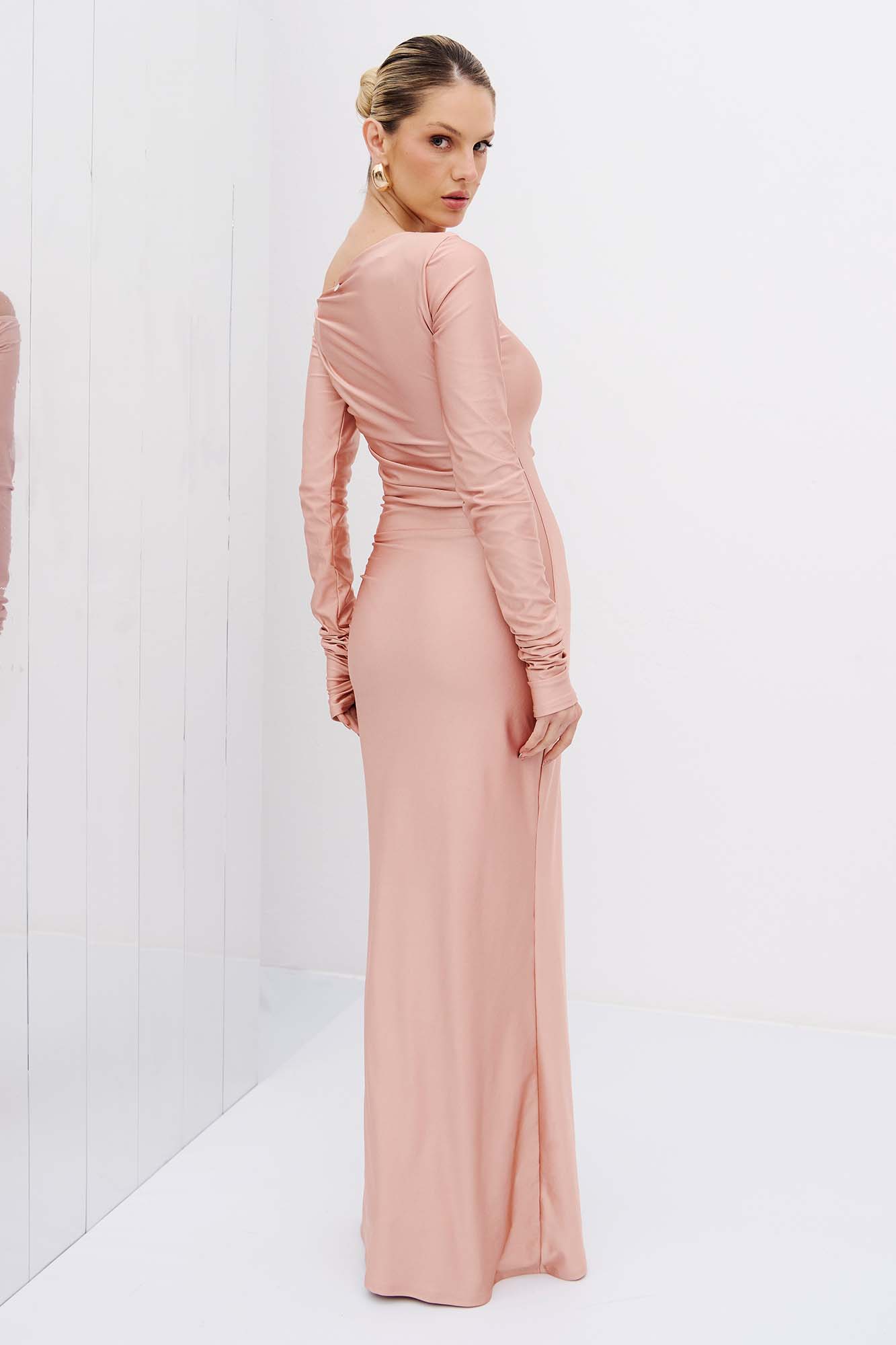 VESTIDO LONGO COM DECOTE ASSIMÉTRICO