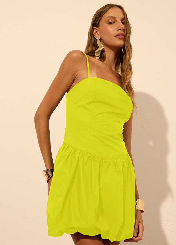 Vestido confeccionado em tecido plano Algodão Paper, conta com forro interno, alças ajustáveis com reguladores e zíper invisível na parte posterior, garantindo ajuste impecável no corpo. Os recortes frontais com efeito corset desenham a silhueta, enquanto a barra assimétrica balonê adiciona um toque fashionista e ousado ao look. Combine com acessórios metalizados para uma produção especial!