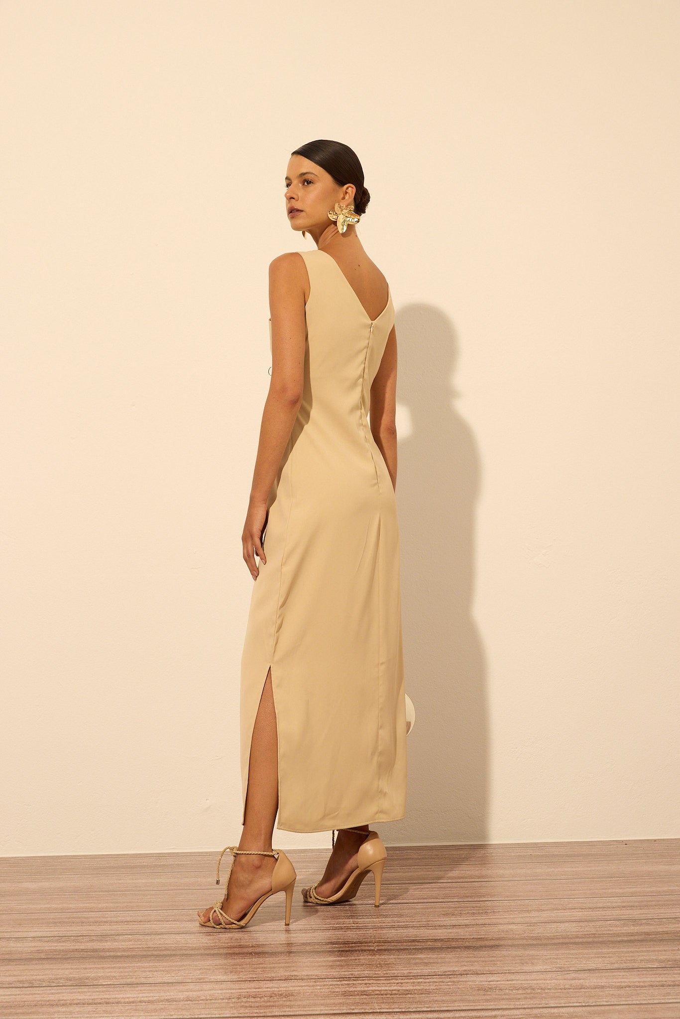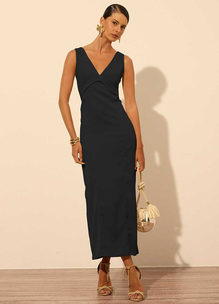 Vestido de alfaiataria com fenda lateral da City Blue, confeccionado em crepe Paris. Com busto duplo e decote em V que alonga a silhueta, a peça conta com pences e recortes estratégicos para valorizar o corpo. O forro e o zíper invisível garantem conforto, enquanto a aba frontal em formato orgânico adiciona um toque moderno ao design. Combine com scarpins ou sandálias de salto alto para um look totalmente contemporâneo.