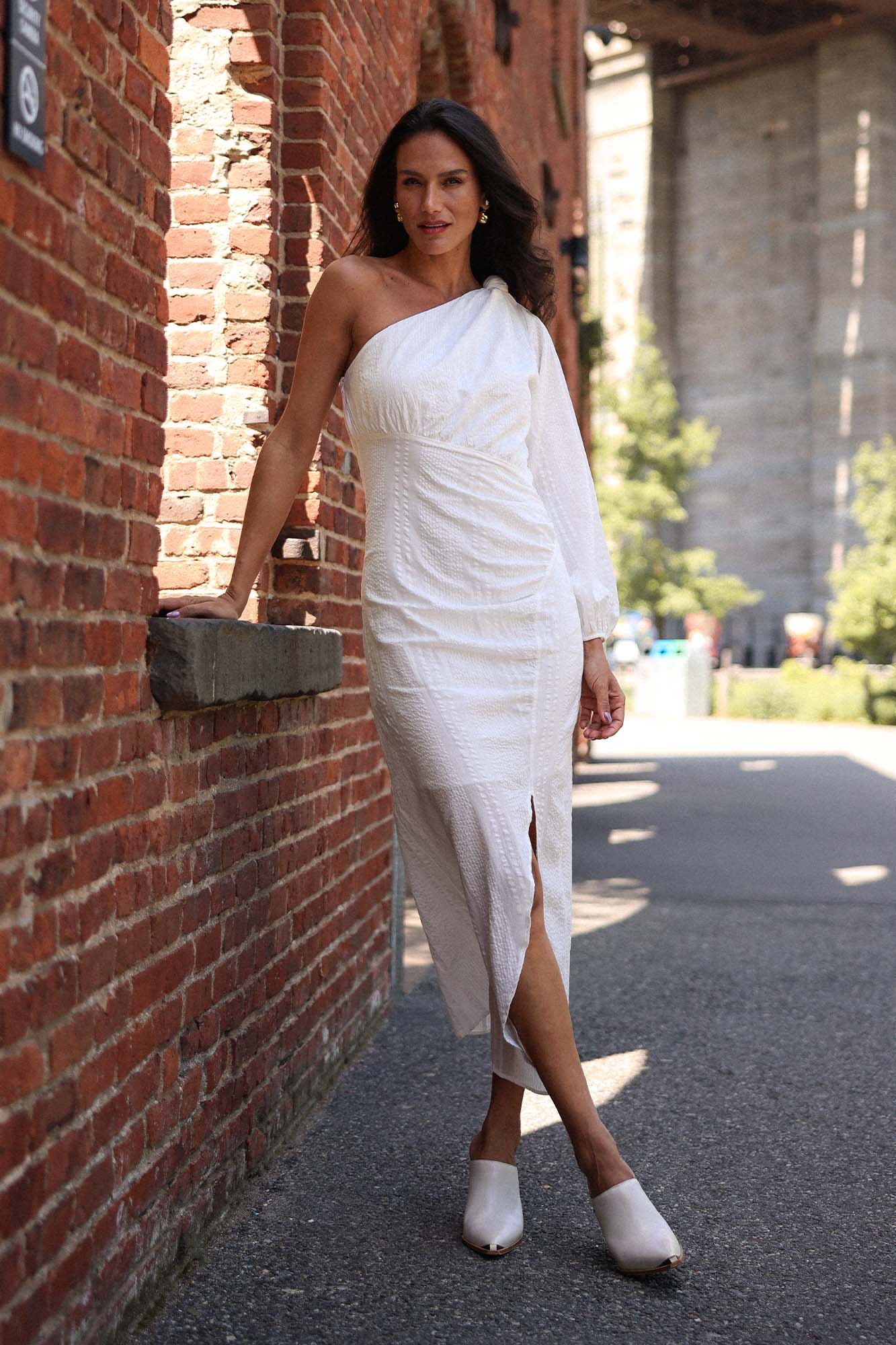 VESTIDO OMBRO ÚNICO COM FENDA