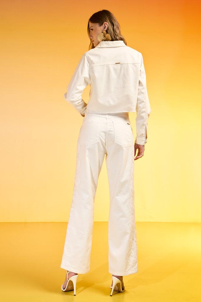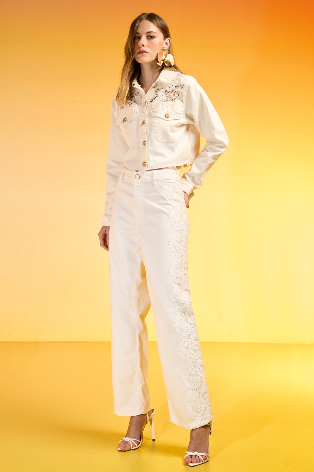 *CALÇA RETA COM RENDA APLICAÇÃO CÓS ALTO