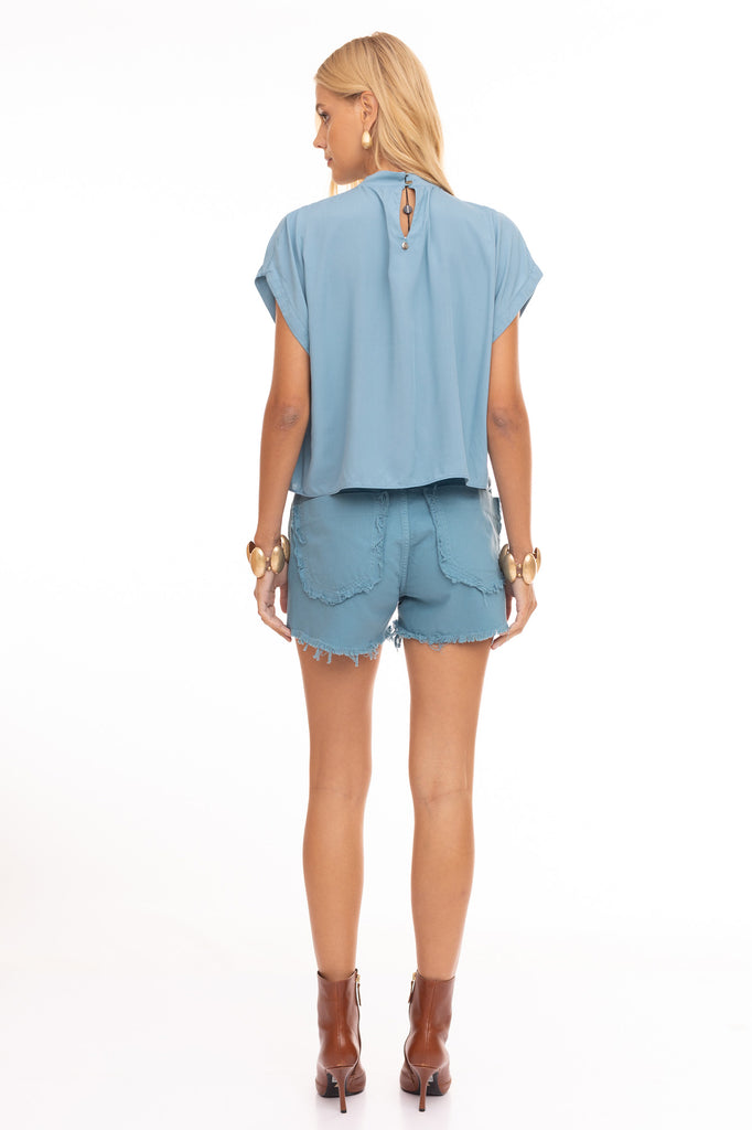 Short Comfort confeccionado em jeans color. A peça possui cós com passantes aplicados, dois bolsos funcionais na parte frontal, gibeira e dois bolsos na parte posterior, também funcionais. Com destaque para o cinto em tecido estampado para amarração e acabamento desfiado nos bolsos e na barra. O jeans color é a escolha perfeita para adicionar um toque de modernidade para o seu guarda-roupa.