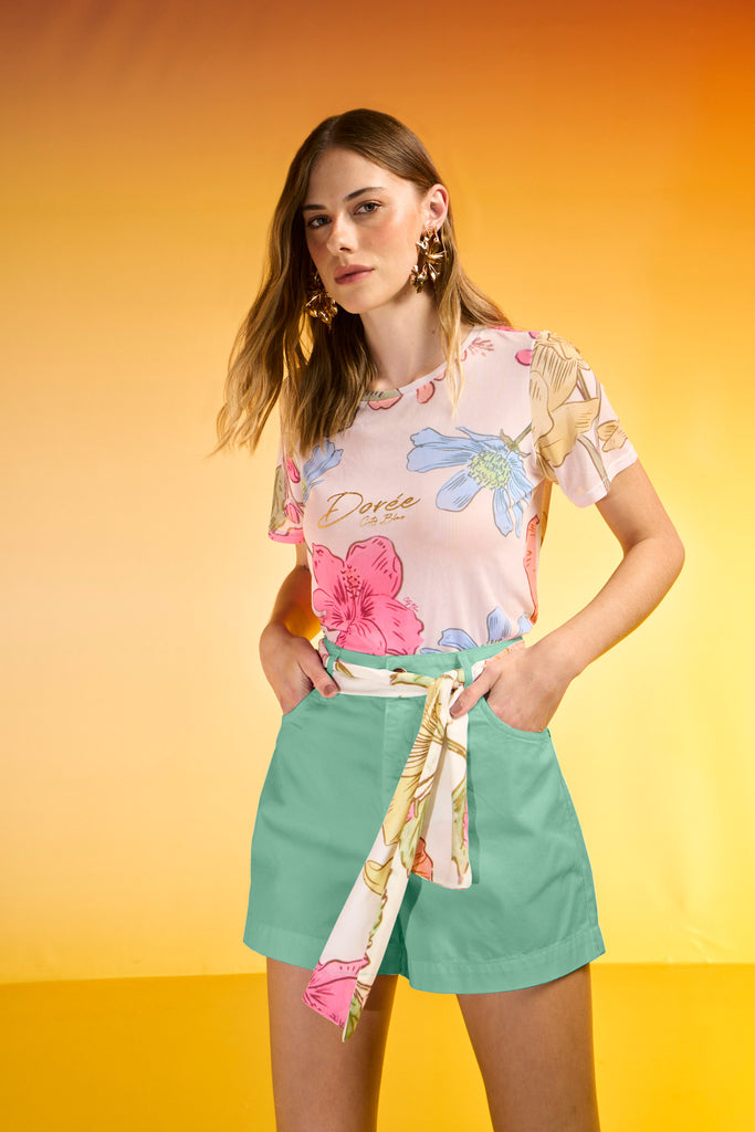 SHORT COMFORT COLOR COM CINTO ESTAMPADO