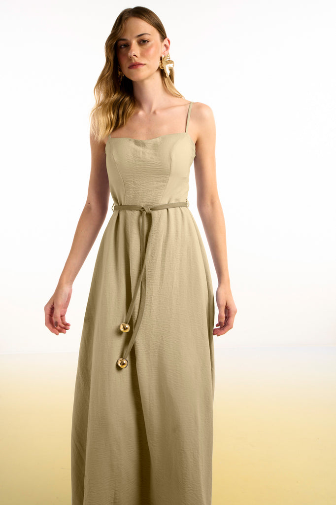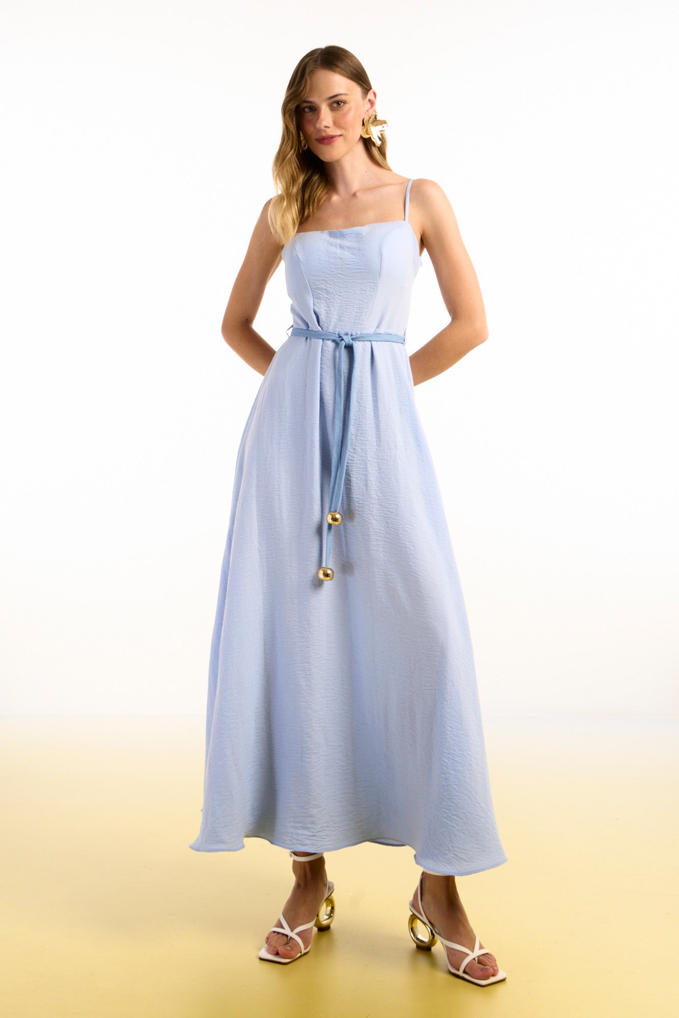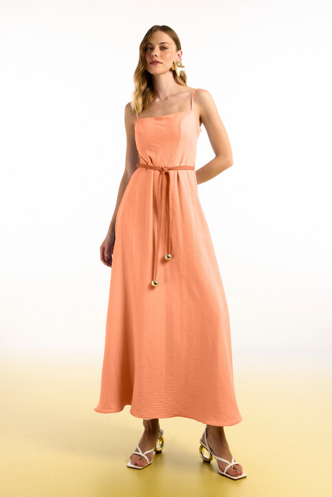 Vestido evasê confeccionado em tecido plano, com forro e bojo que proporcionam conforto e sustentação. Suas alças ajustáveis garantem o caimento perfeito, enquanto a abertura posterior discreta agrega um toque de sofisticação. Uma peça romântica e fresca, ideal para passeios diurnos e momentos de lazer com estilo e praticidade. 100% POLIESTER.