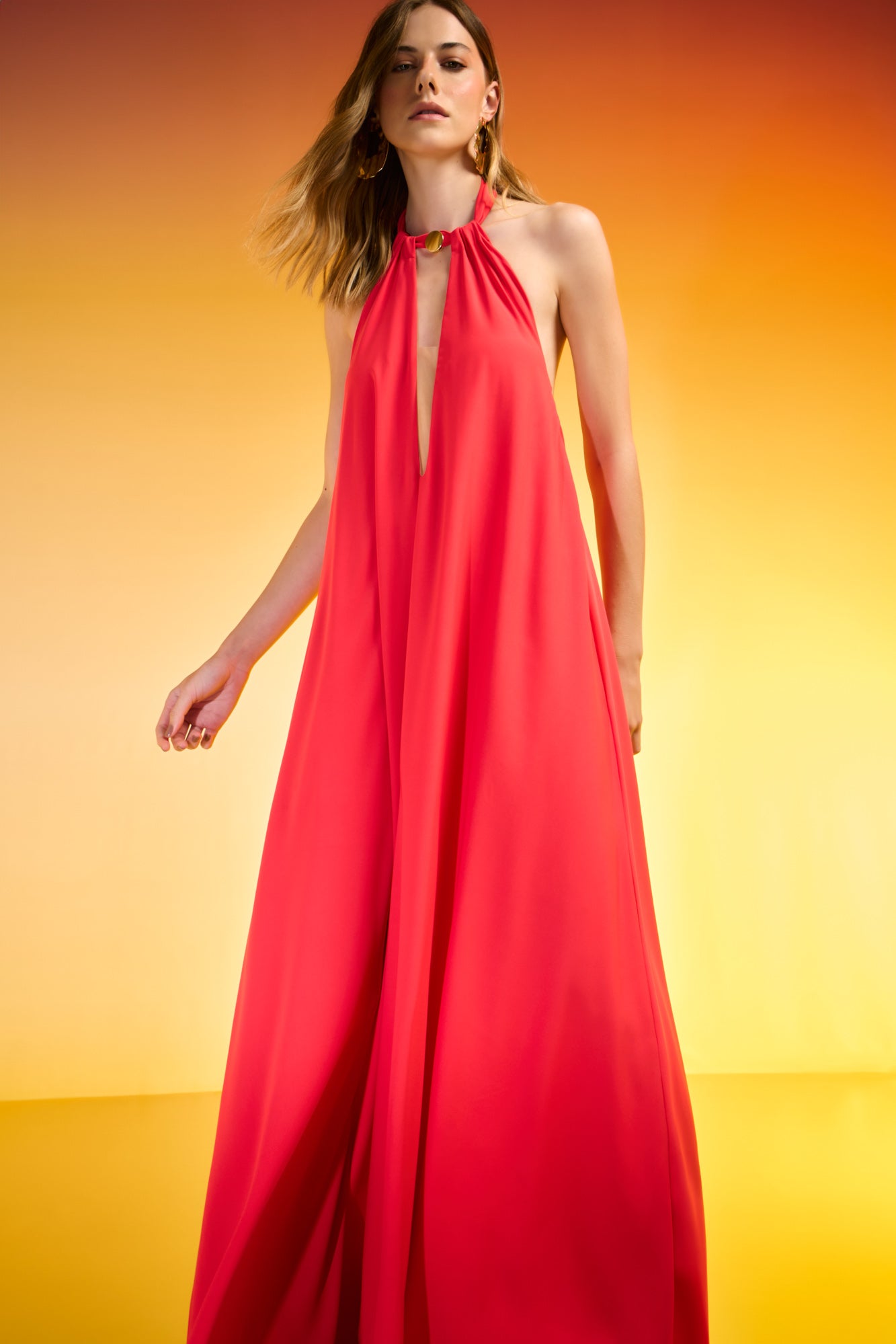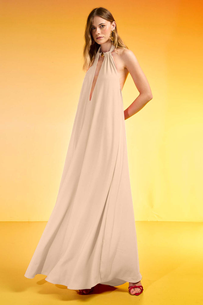 Vestido fluido frente única com detalhe em metal. Confeccionado em tecido plano com caimento leve e forro, essa peça valoriza os ombros e alonga a silhueta. O detalhe metálico no decote adiciona um toque moderno e sofisticado, ideal para produções especiais. Dica de look: combine com sandália de salto, clutch estruturada e cabelo preso para um visual chic e poderoso.
