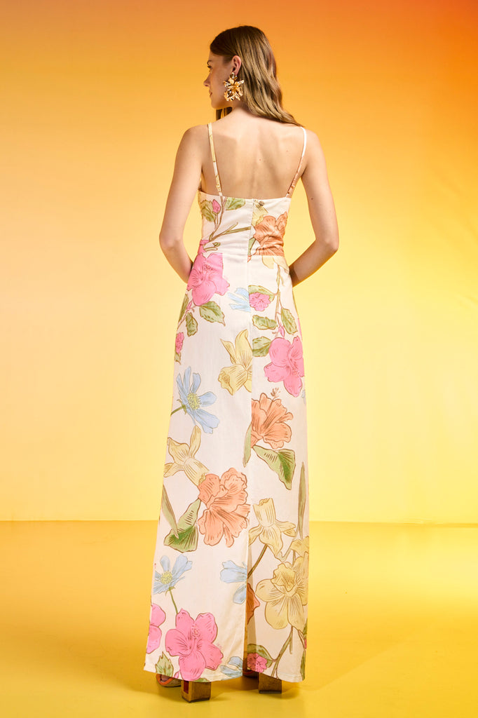 Vestido super midi em tecido tricoline com estampa exclusiva City Blue. Com detalhe drapeado no decote que valoriza o busto, bojo, alças ajustáveis com reguladores e zíper invisível nas costas, essa peça garante conforto e caimento impecável. Para completar, a fenda posterior traz liberdade de movimento e um toque de sensualidade sutil. Dica de look: aposte em maxi brincos e uma mini bag para um visual fashionista e cheio de atitude.